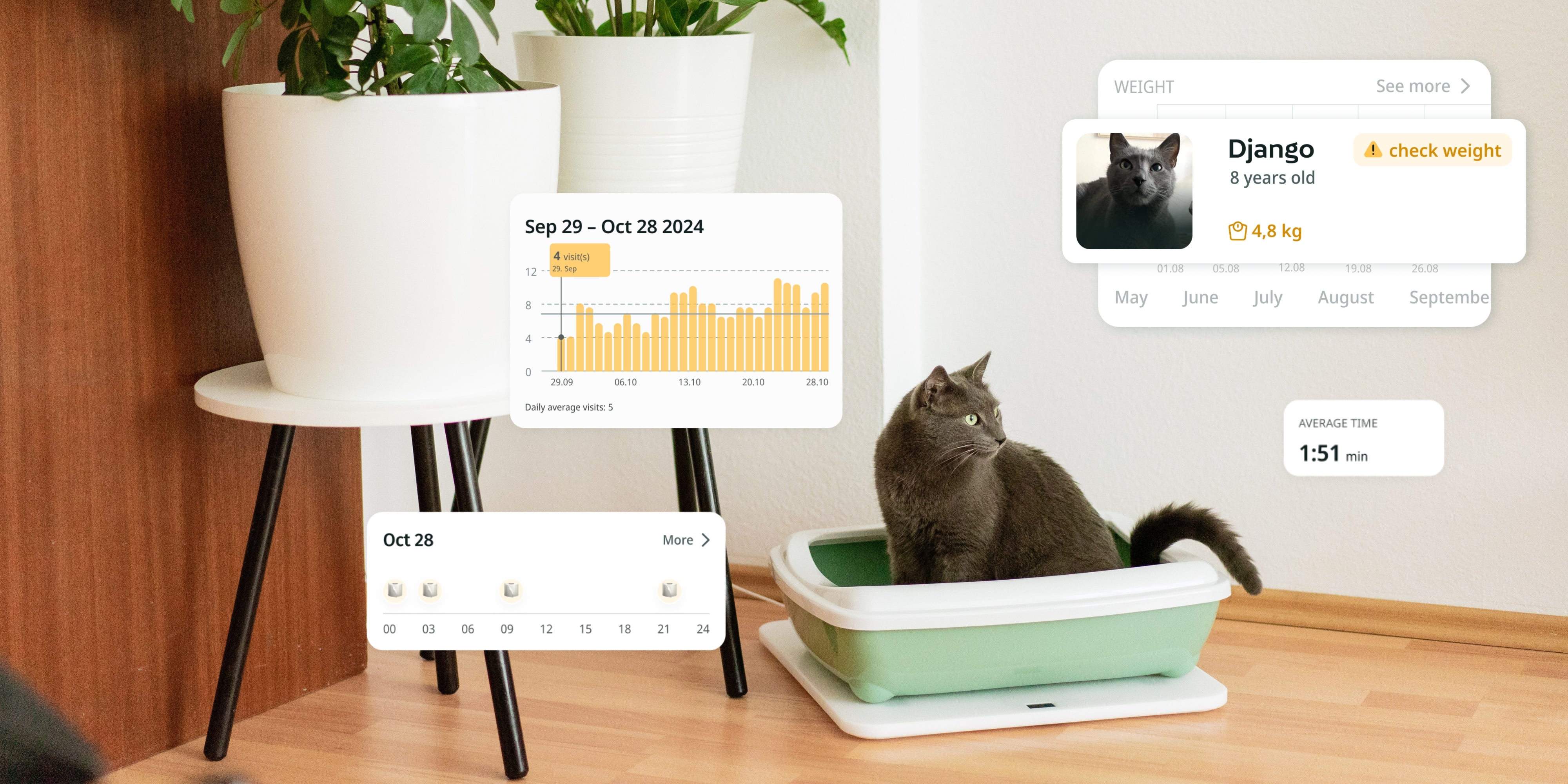Monitoring the litter box allows us to detect potential signs of health problems early. It can be difficult to notice irregularities in litter box visits and changes in excretory behavior with the bare eye.