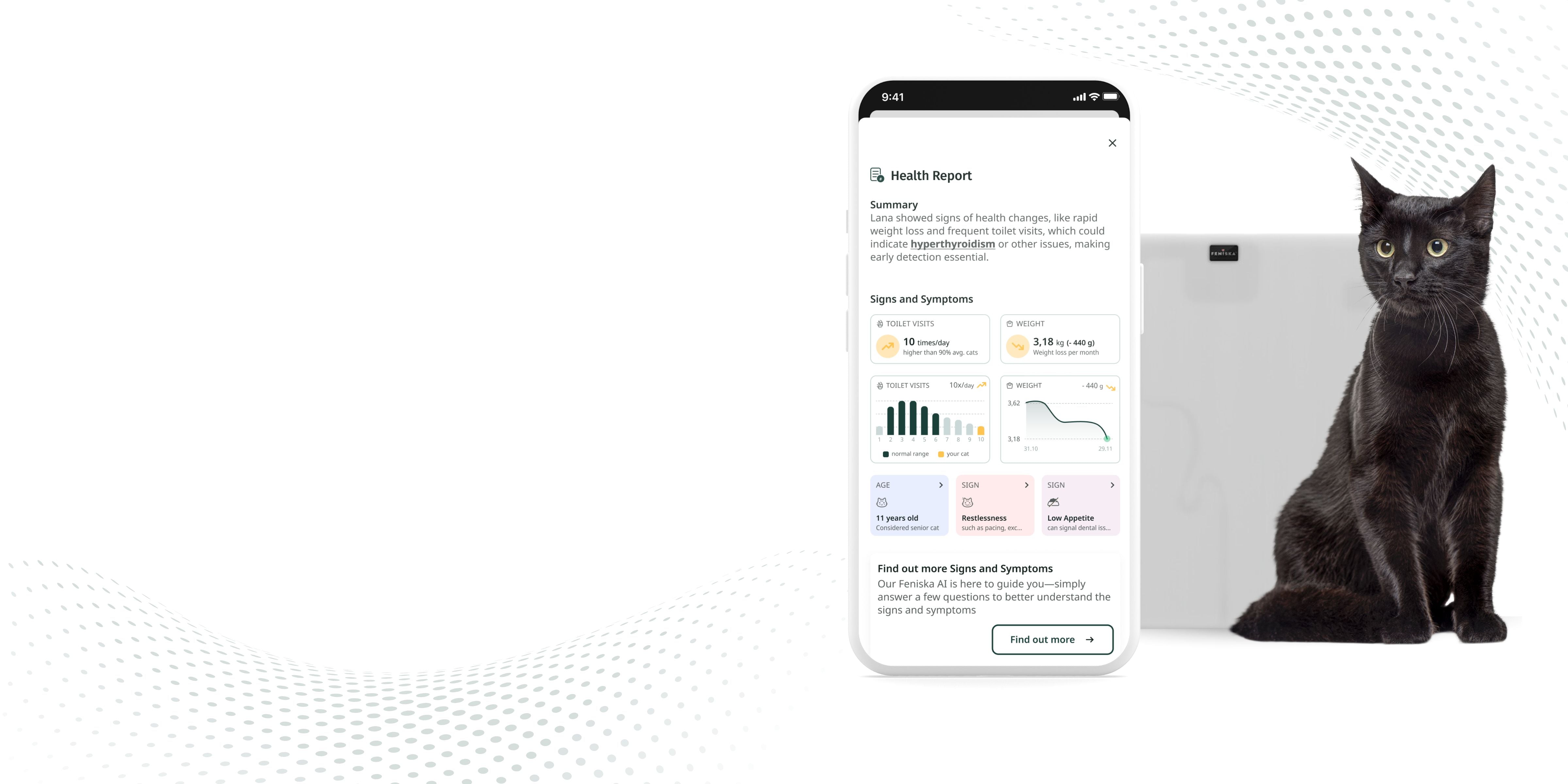 Love the app and the tracker! My cat Timo suffers from chronic cystitis and Feniska is a great help in monitoring recurrences.
